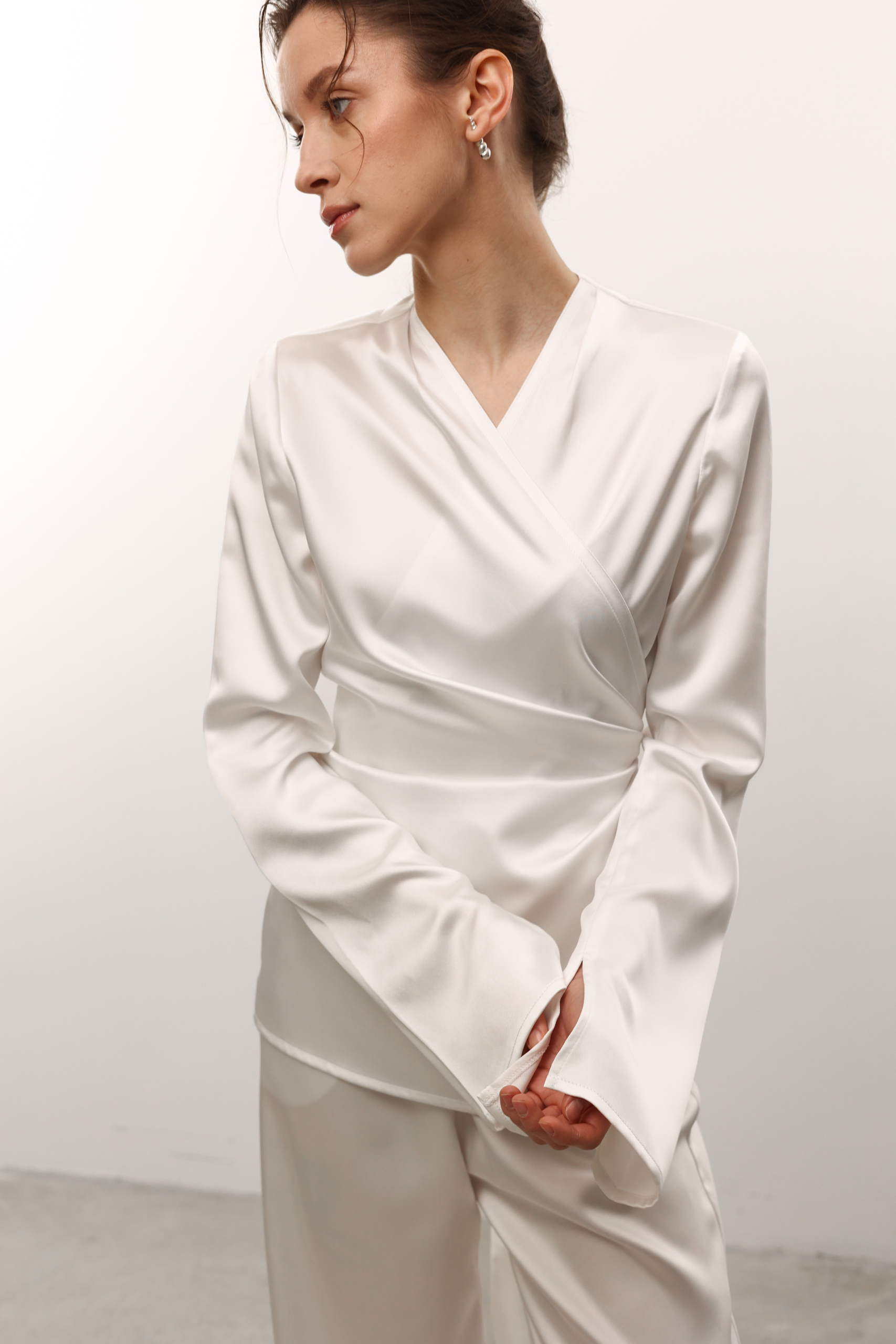 В комплекті з кімоно доступні до замовлення атласні штани кльош.