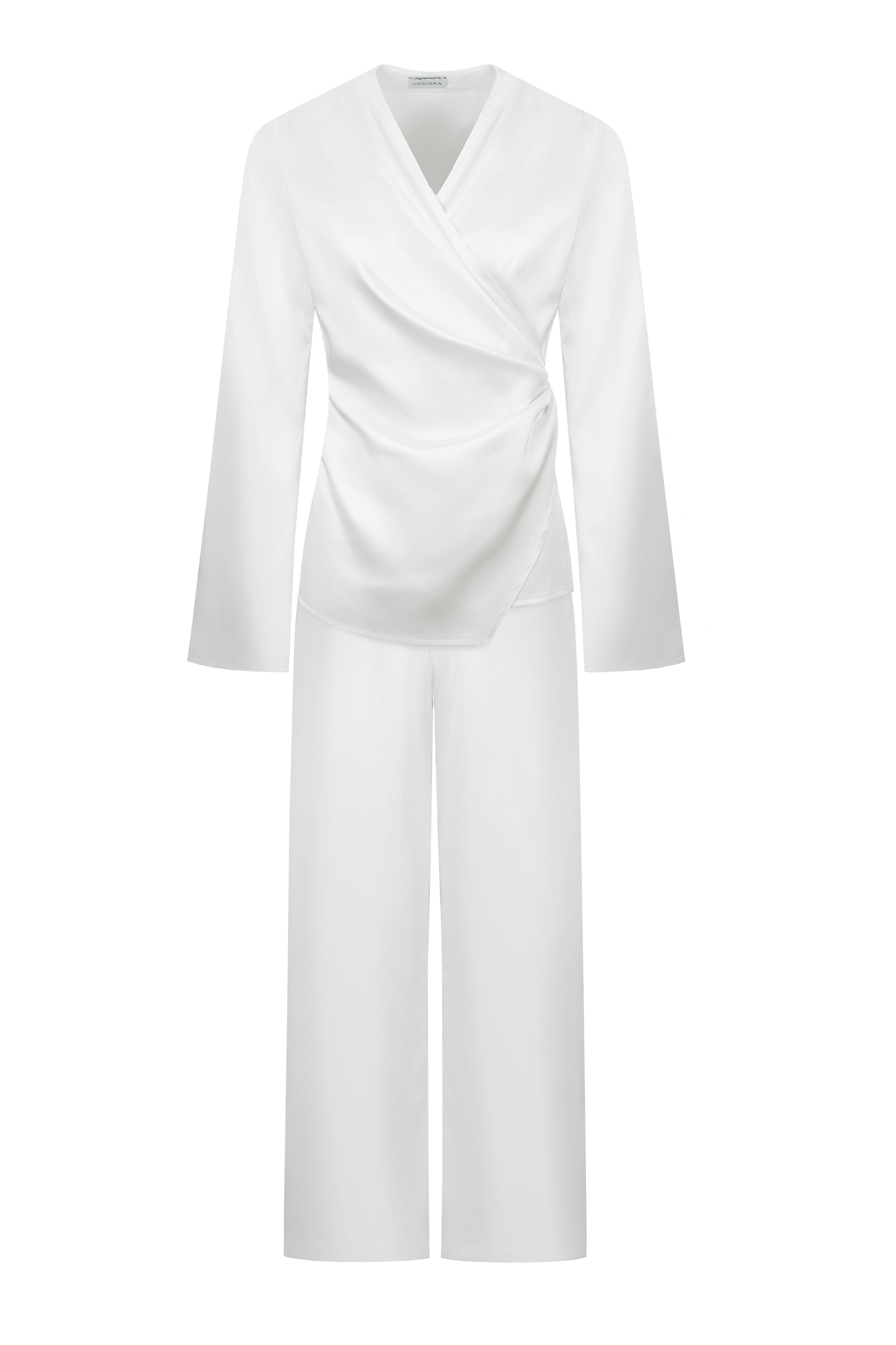 В комплекті з кімоно доступні до замовлення атласні штани кльош.
