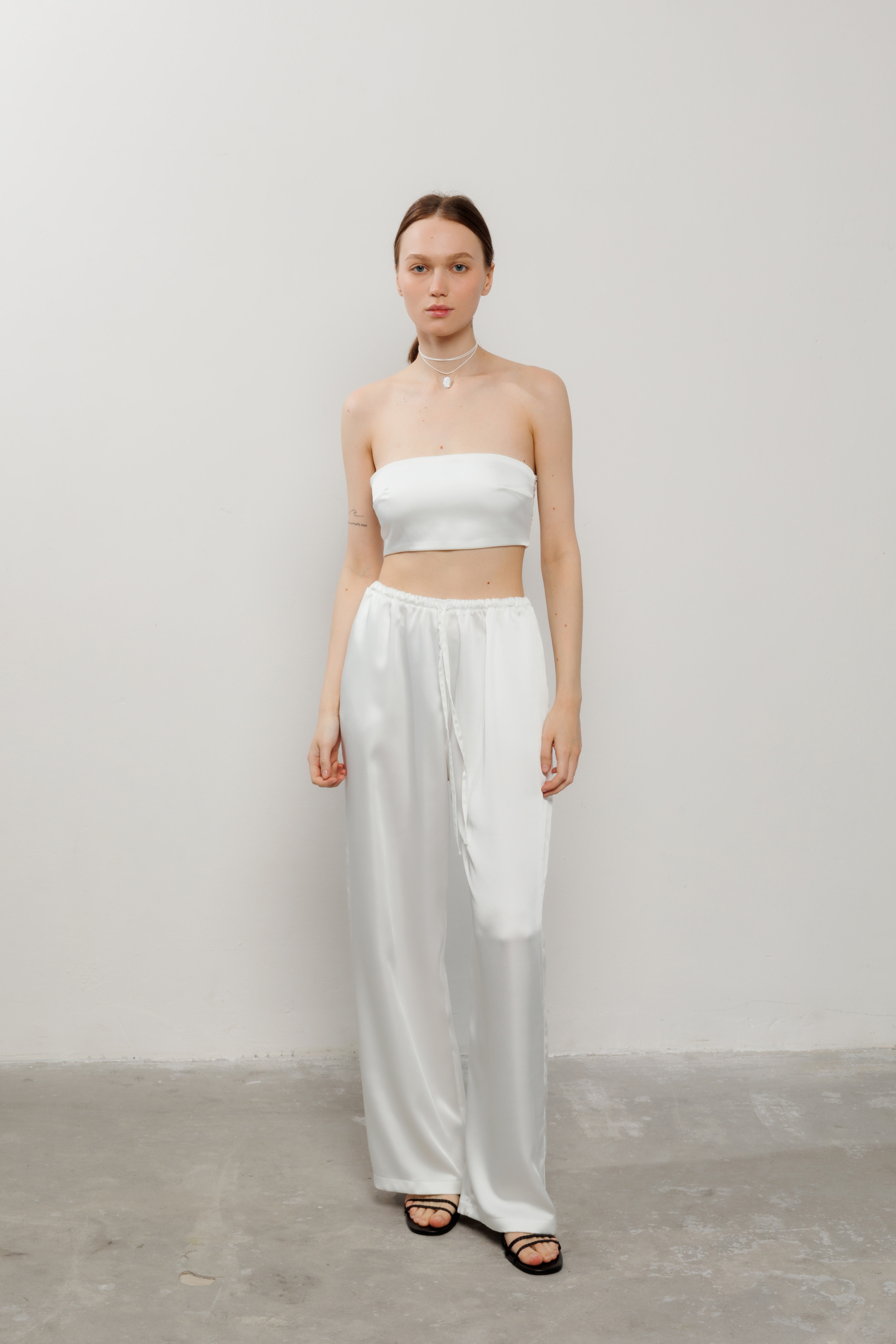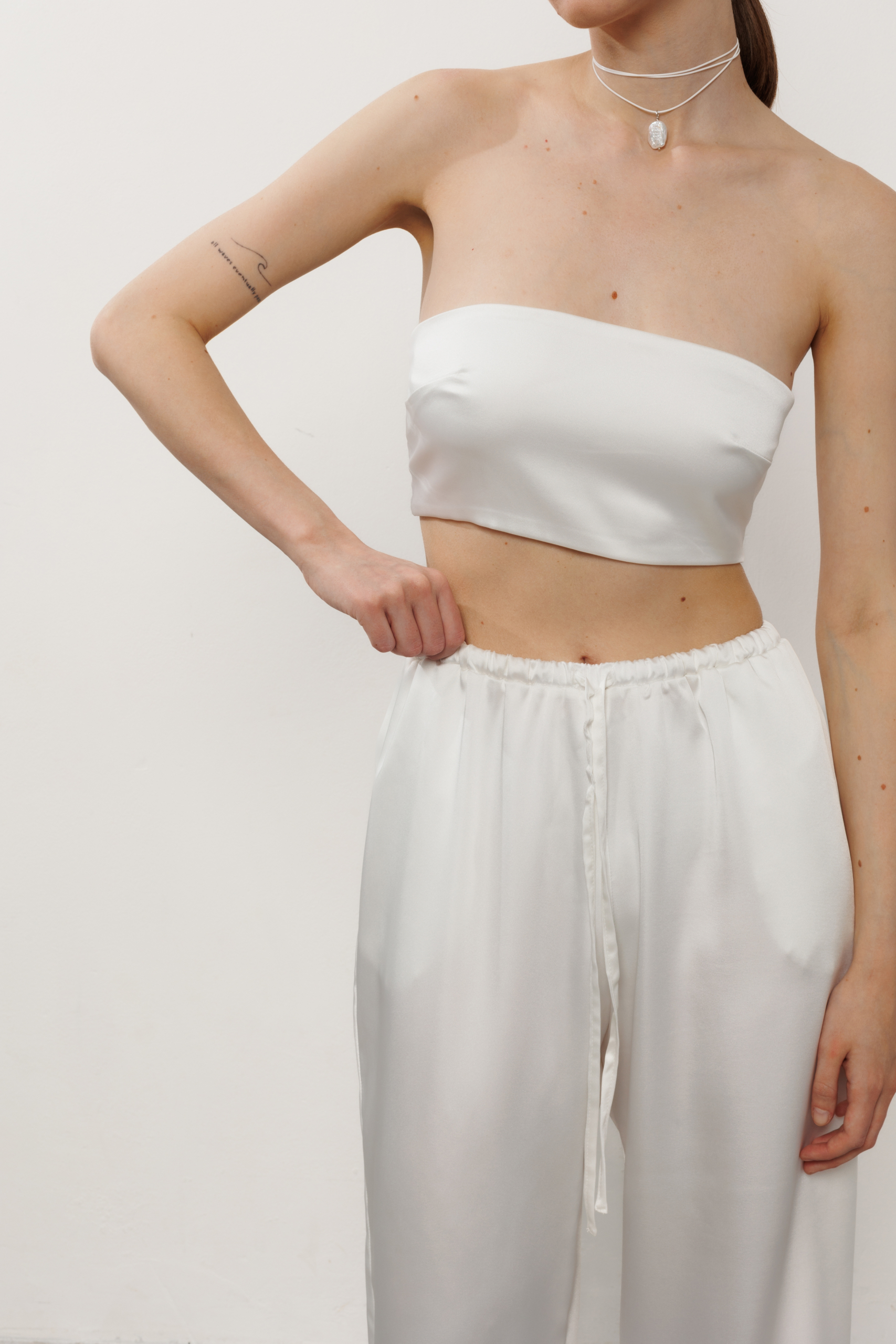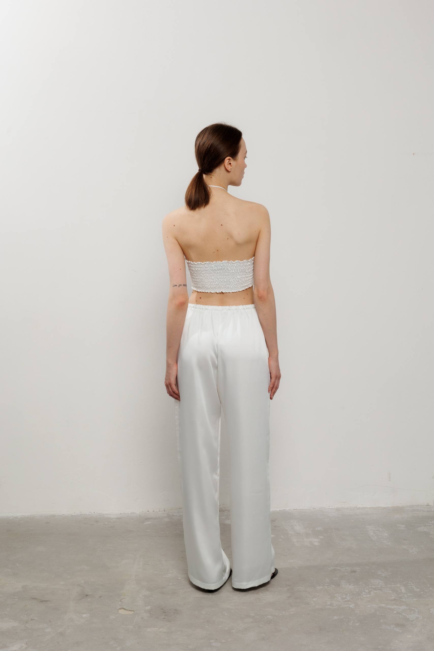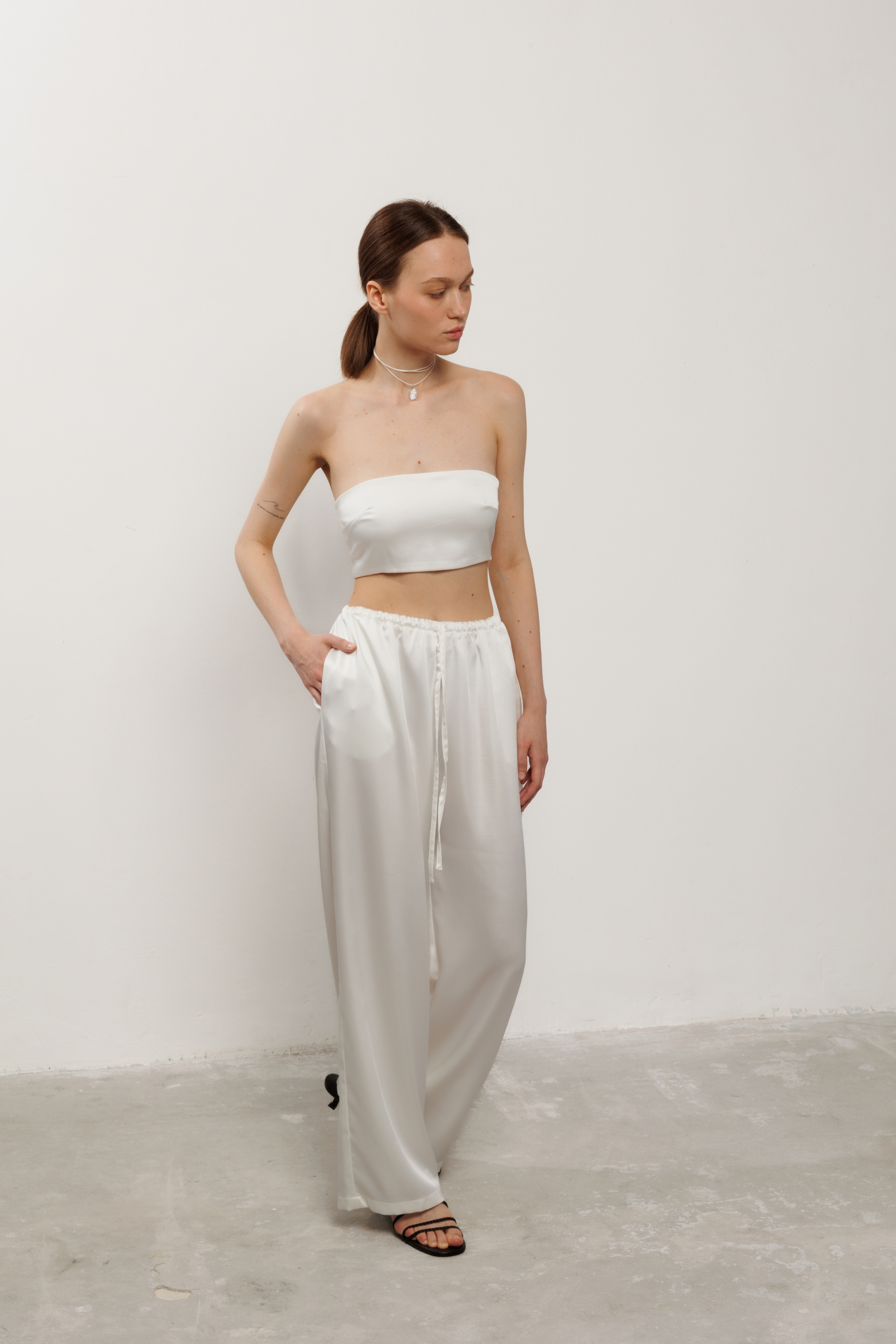 Атласні штани вільного крою з кишенями