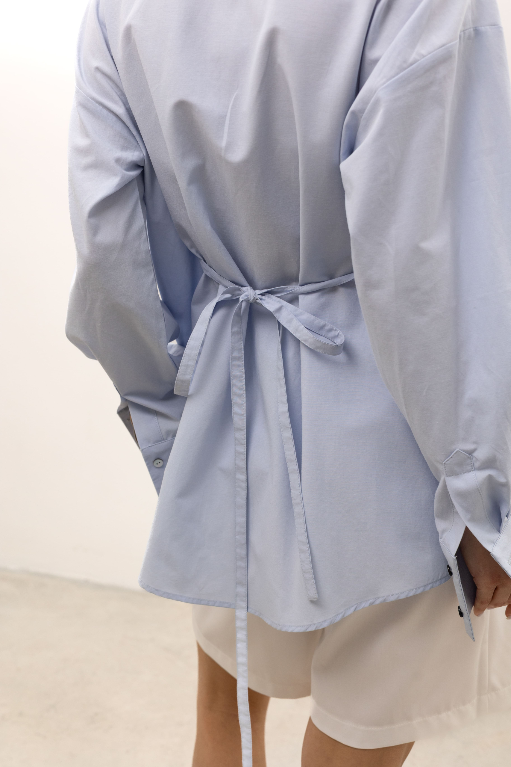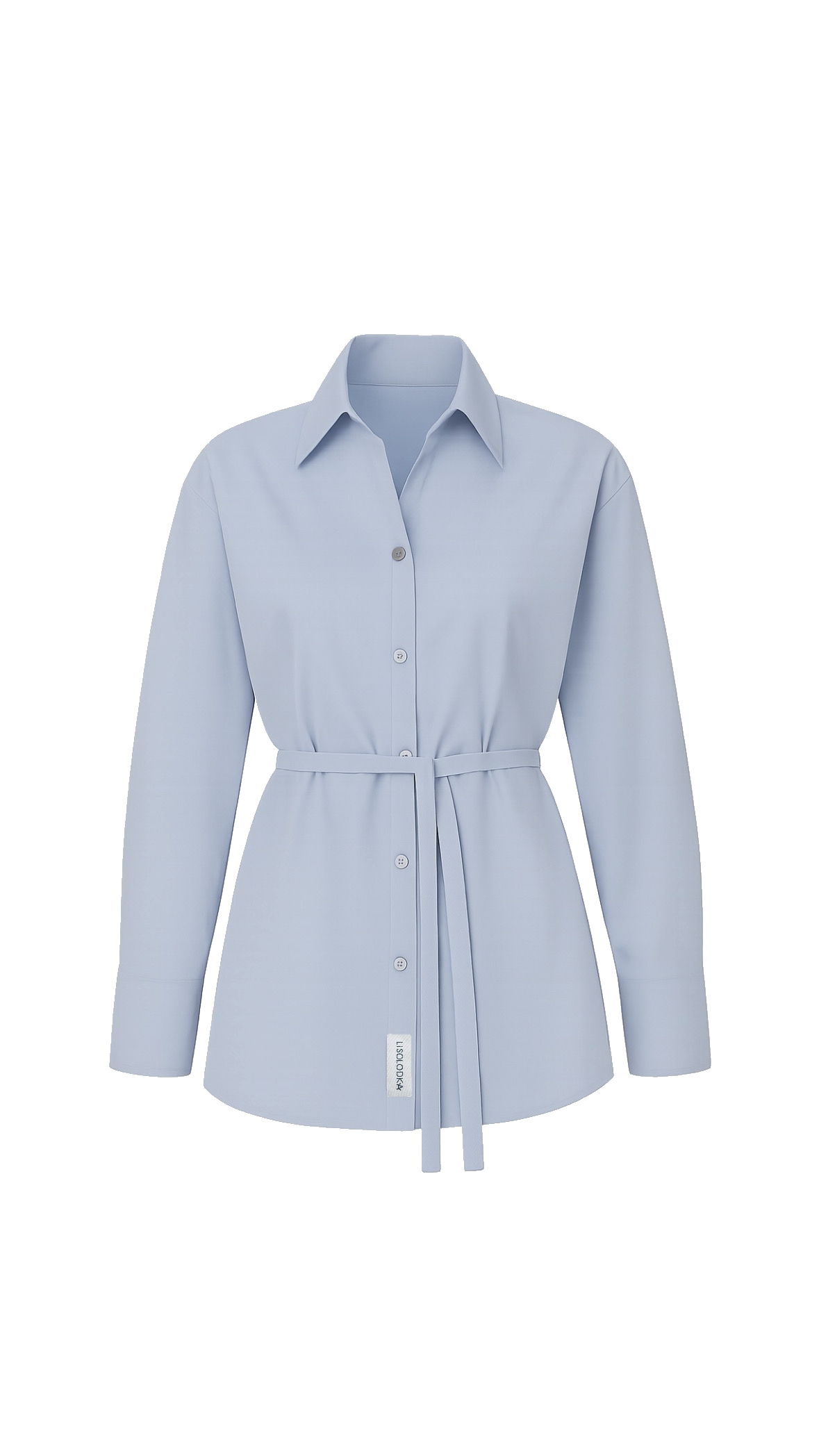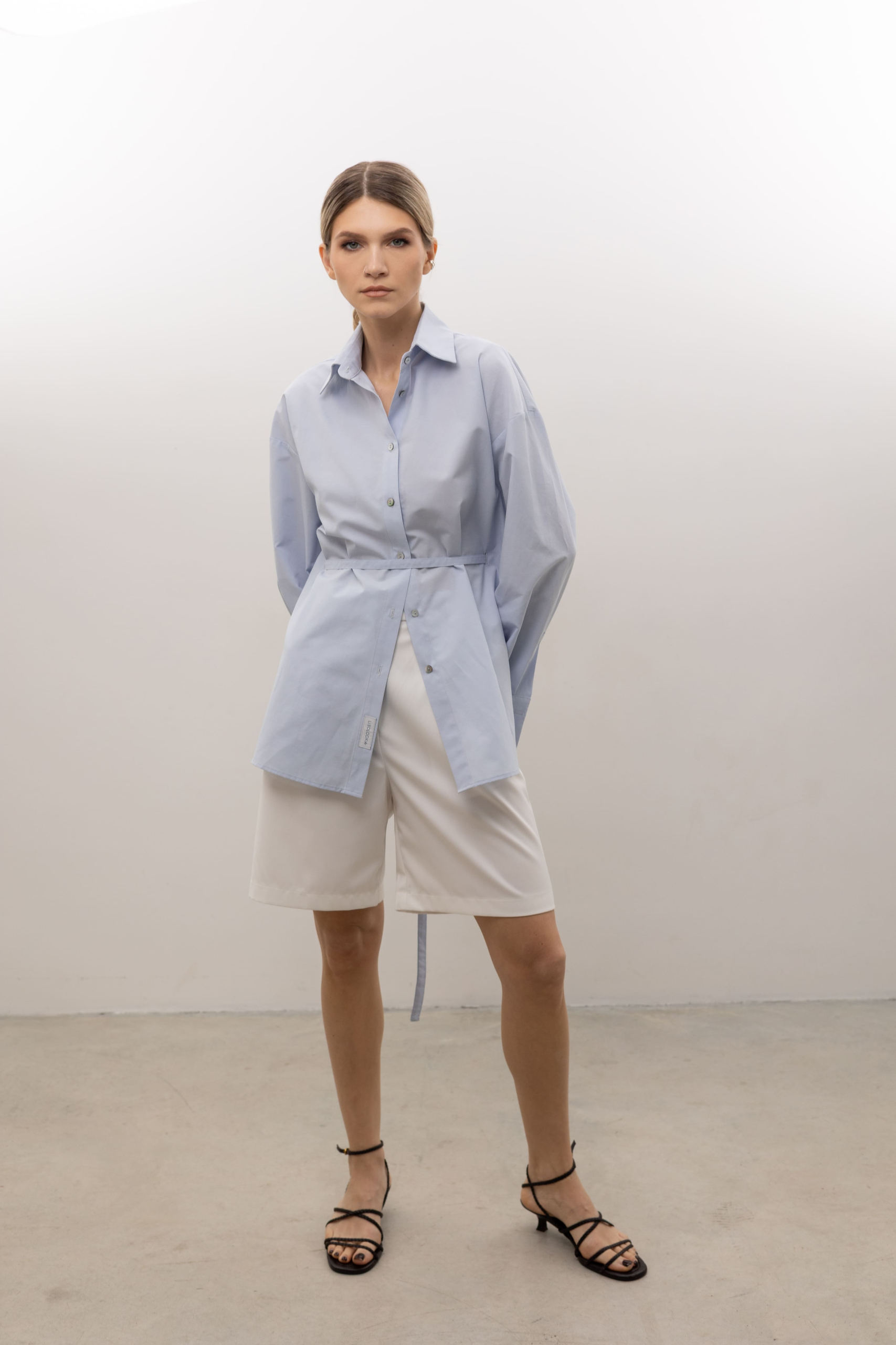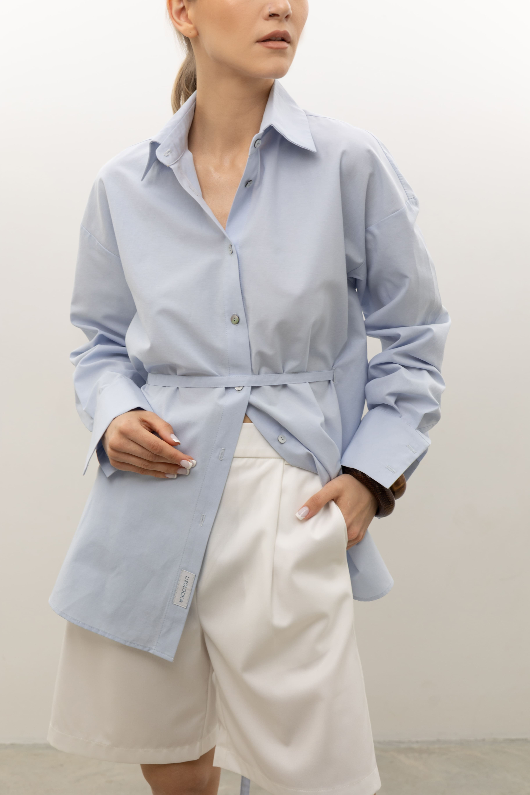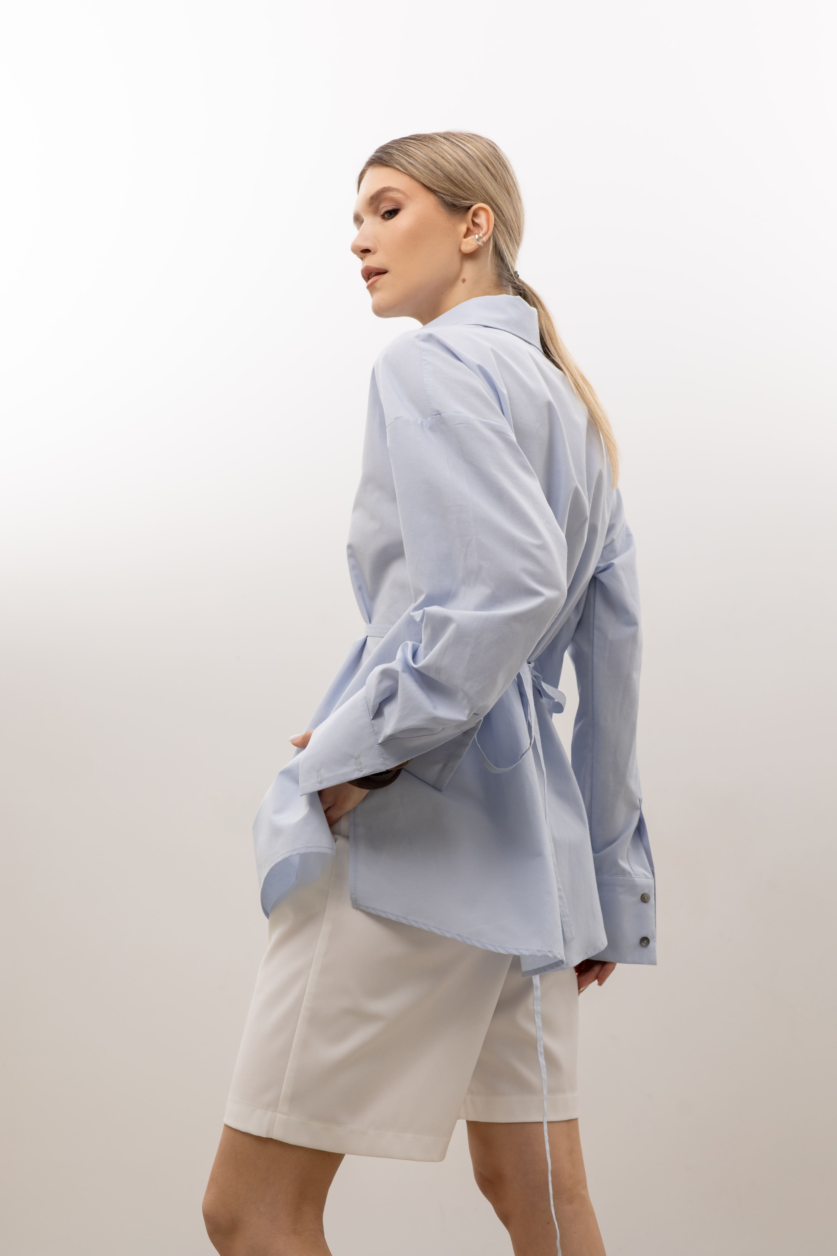 Сорочка небесно блакитного кольору з акцентними елементами на талії