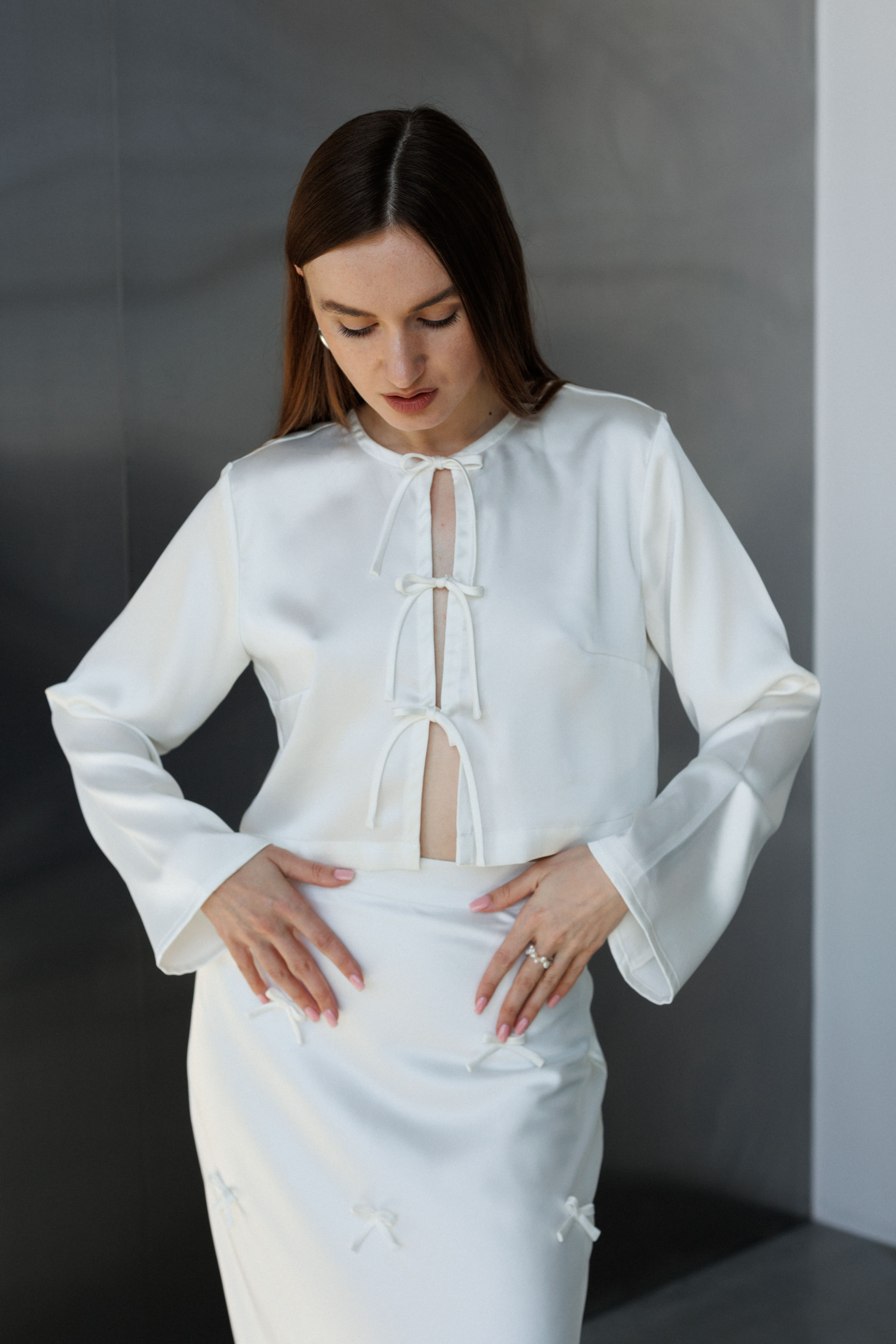 Атласна блуза на завʼязках – перлина нашого весняного дропу.