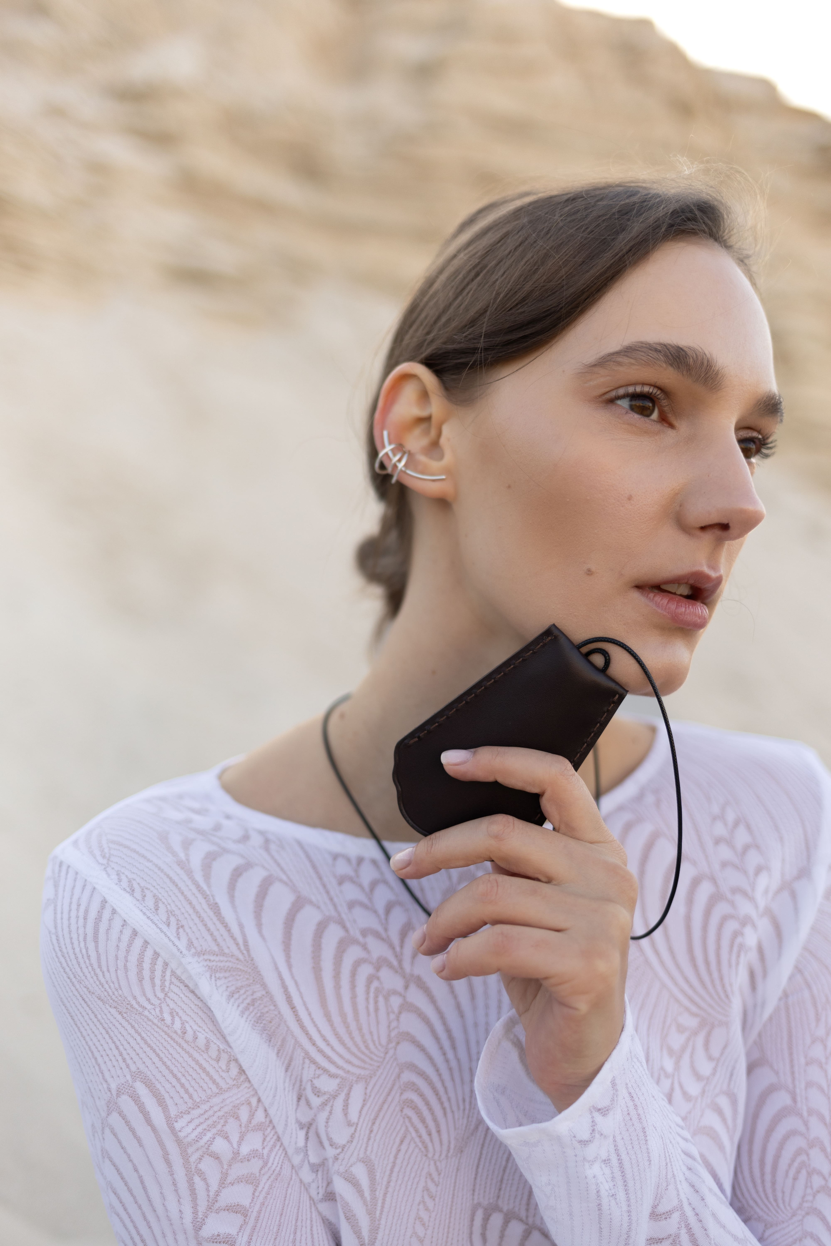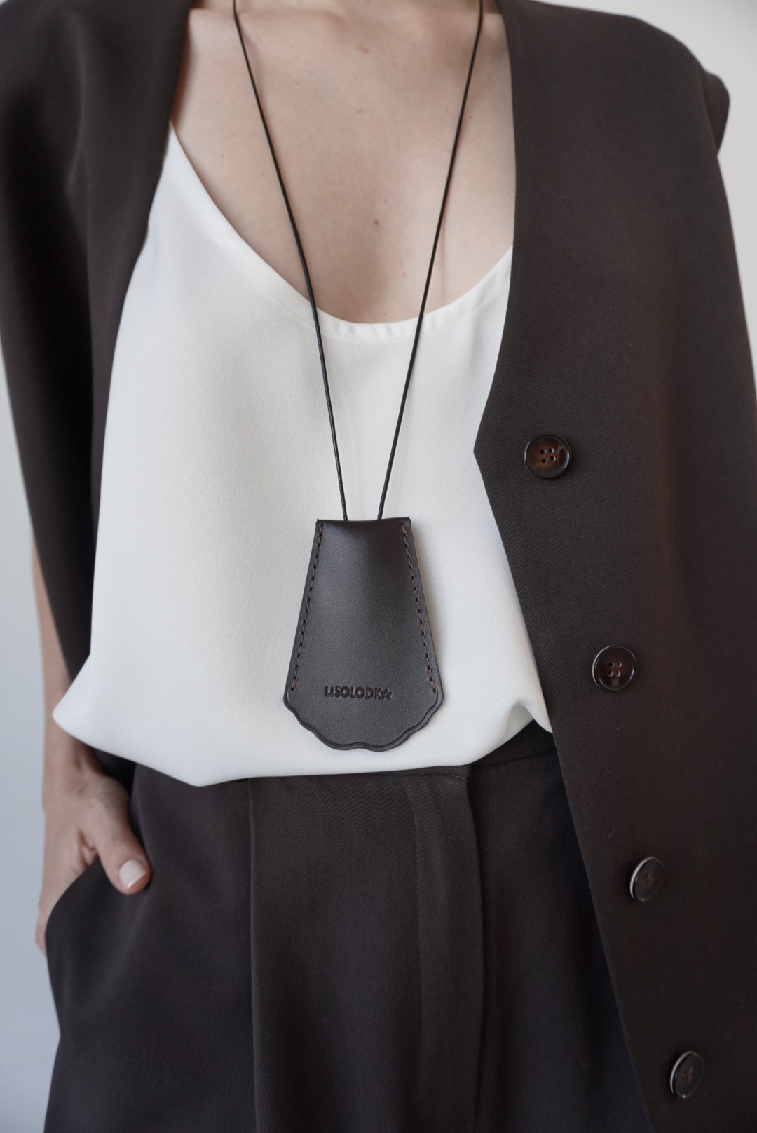 Шкіряна ключниця у кольорі темний шоколад
