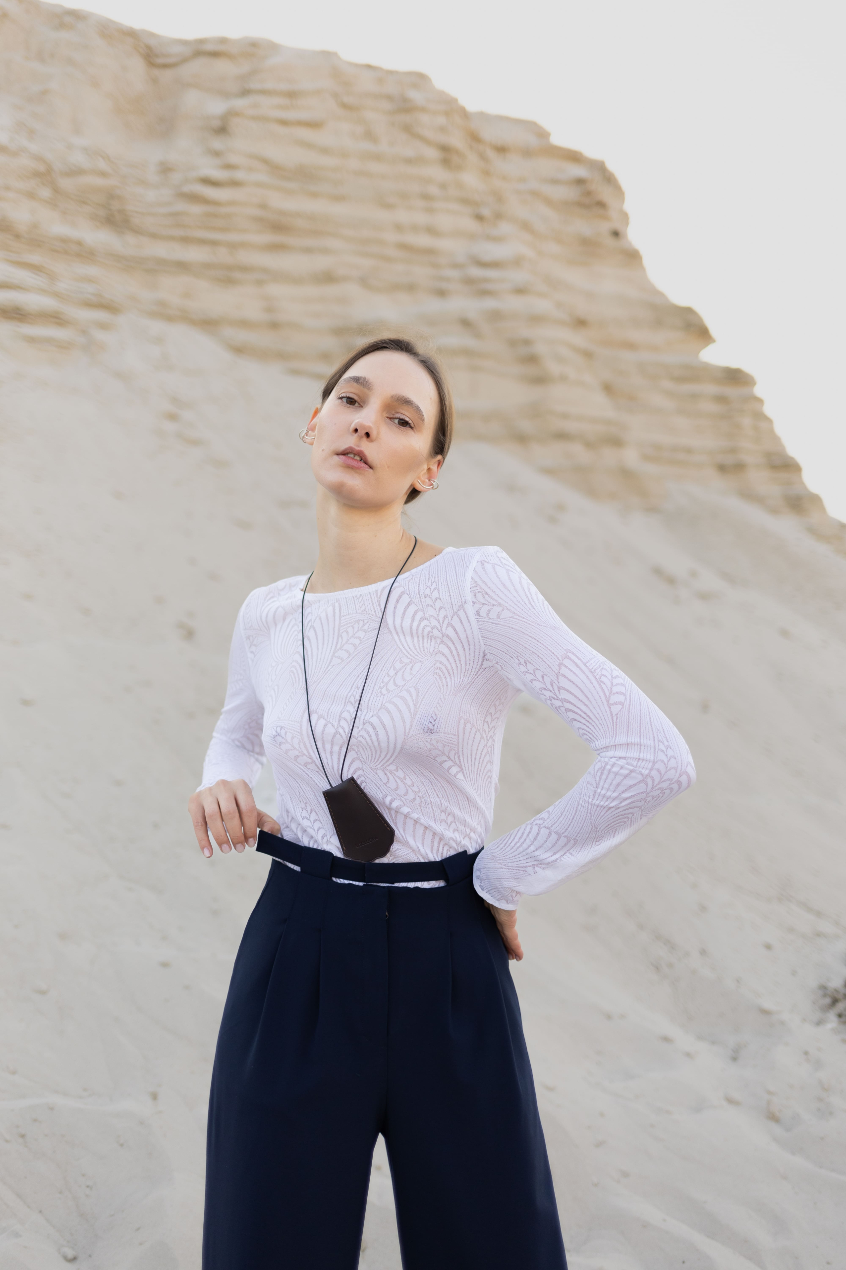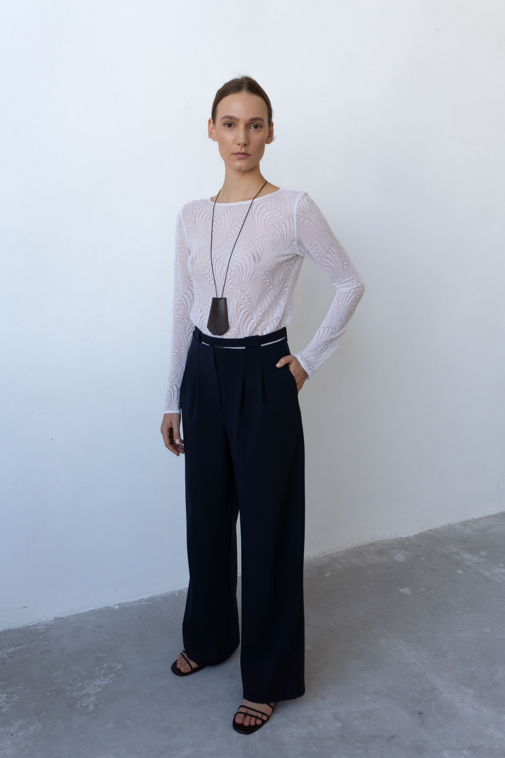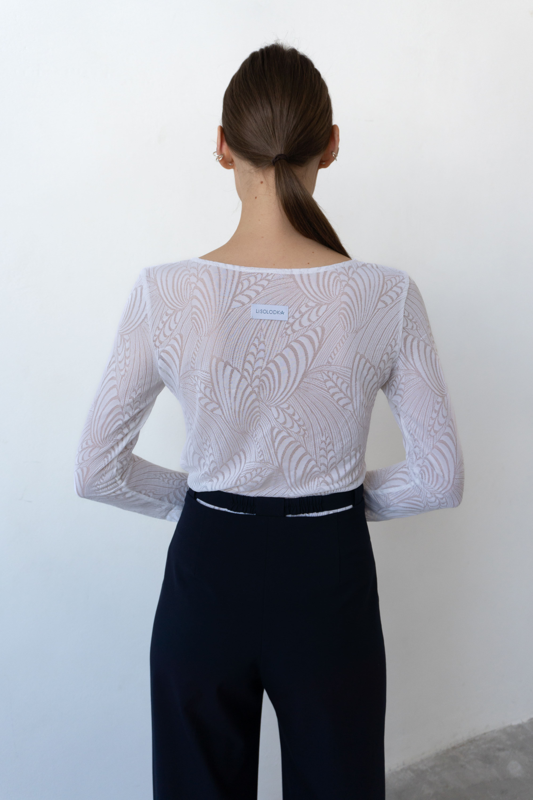 Тендітний базовий лонгслів з італійського мережива
