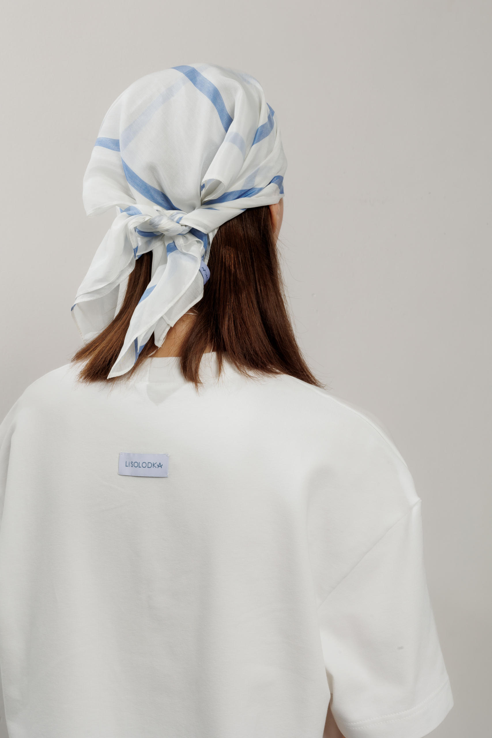 Ацентна хустка з акватичними мотивами, що стає чудовим доповненням літнього образу
