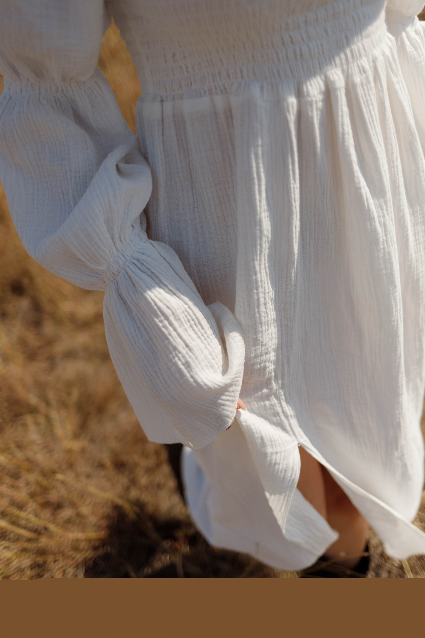 Виготовлена з мусліну (склад 100% бавовна). Не просвічується, за рахунок жатої структури тканини не потребую додаткового прасування. Ідеально підходить для спеки.